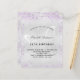 Um convite de aniversário moderno, elegante e minimalista. Fundo metálico de aspecto fino prateado, decorado com poeira de cinza púrpura e poeira brilhante e uma borboleta como marca de água. Personalize e adicione seus nomes e detalhes do casamento. Letras pretas coloridas.