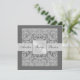 Faça uma declaração elegante com nosso convite para casamento da fronteira do Damask do Silver e da Cinza. Totalmente personalizável.