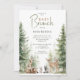 Apresentando nosso convite para o aspersão de bebês de animais florestais, perfeito para uma celebração engraçada e caprichosa! Apresentando um tema da floresta aquarela com criaturas adoráveis como uma raposa, urso pardo, coelho e veado, é excelente para um chá neutro em relação ao gênero. Esta design de inspiração boêmica estabelece uma cena doce e simples com sua paisagem natural de árvores verdes e aves clássicas da floresta. Ideal para acolher um menino ou uma menina, este convite é tão charmoso quanto é eterno. Por favor, sinta-se à vontade para fazer quaisquer perguntas sobre a design do produto; estamos felizes em ajudar!