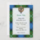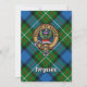 Brasão do clã Ferguson rodeado por uma alça e fivela sobre um fundo de tartan. Texto personalizado em ambos os lados.