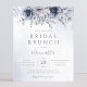 O elegante e moderno orçamento floral brunch, convites com flores azuis empoeiradas de cor d'água com caligrafia manuscrita.