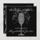 Copo de champanhe / taça de vinho moderno em estilo de renda decorado com bolhas, uvas e videiras. Ótimo para Engajamento, 50º Aniversário de Casamento, Formatura, Ano Novo ou qualquer Celebração. Personalize este convite com seu próprio texto. Decorado em ambos os lados. Muito espaço para todas as suas informações. Ilustração original de pj_design.