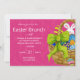 Convite Colorido de Páscoa Brunch. Coelhinho da Páscoa girando atrás de uma cesta de Páscoa cheia de ovos de Páscoa. Adicione os detalhes da sua festa.