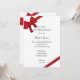 Convide os convidados a continuar a festa na manhã após a cerimônia de casamento em dezembro com o festivo Convite para Brunch de Inverno de Pós-Casamento Red Bows. Este elegante convite personalizado de café da manhã ou almoço pós-casamento invernal apresenta um design elegante de laço vermelho adornando os cantos com um fundo branco que se assemelha a um presente de Natal embrulhado.