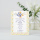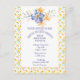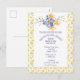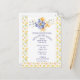 Flores de Páscoa em amarelo e roxo decoram o topo deste convite.