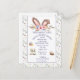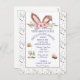 Orelhas de coelho da Páscoa com flores cor-de-rosa decoram o topo deste convite.