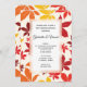 Convide os convidados para celebrar os noivos na manhã após a cerimônia de casamento no outono de setembro, outubro ou novembro com o convite natural para Brunch Pós-Casamento com Folhas de Outono Brilhantes. Este elegante convite personalizado para Café da Manhã ou Almoço Pós-Casamento apresenta folhas de outono vermelhas, amarelas e laranjas em um fundo branco.
