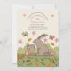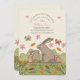 Um convite encantador que inclui mamas de mães e bebês cercadas por flores, folhagem, borboletas e paisagem cardíaca. Adorável como convite para chás de fraldas, convite de aniversário, também adequado para todas as celebrações de temas de Páscoa.<a href='http://www.freepik.com/free-vector/vintage-card-of-easter-bunnies-in-a-landscape_1054779.htm'>Concebida por Freepik ().