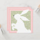 A silhueta linda de um coelhinho branco da Páscoa decora esse convite verde e rosa