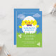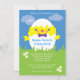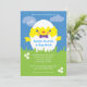Este convite bonito e divertido é ideal para reunir família e amigos para celebrar o domingo de Páscoa. Ele apresenta um chic fofo saindo de um ovo branco vestindo uma gravata arco e com bochechas rosadas. A grama verde e o céu azul dão a este cartão um sentimento ao ar livre ideal para uma caça aos ovos.