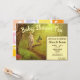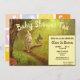 Este convite para um chá de fraldas e/ou chá apresenta uma floresta de fantasia mágica brilhante com a luz do sol. Um bebê está cavalgando um cachorro branco enquanto um gato com bagagem empilhada nas costas segue. Os detalhes do seu evento estão em uma área in a box na parte inferior direita. O texto marrom profundo está limpo contra um fundo amarelo pálido. Cada linha de texto pode ser facilmente alterada para as especificidades do seu partido.
