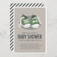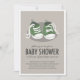 Adorável convite para chá de fraldas de tênis de bebê verde. Este convite para chá de fraldas de tênis verde giro é facilmente personalizado para o seu evento adicionando detalhes do evento, estilo de fonte, tamanho de fonte e cor e texto.