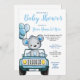 Garoto Chá de fraldas com Urso Bebê (Urso de Teddy) em carro azul e balões para NOVO chá de fraldas NORMAL em Fresco pandêmico. ☐ ▪ ▪ ▪ ▪ Mais itens correspondentes aqui https://www.zazzle.com/collections/bear_blue_wooden_rustic-119286325608459140?rf=238722231659402553 Quer um design especial, entre em contato conosco no dia seguinte, em:gmail.com