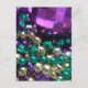 Foto de miçangas de Mardi Gras. Os arremessos apresentam as cores dourada, roxa e verde de Mardi Gras ou Carnaval. Personalize a parte de trás deste cartão postal com o seu próprio texto ou imagens. Faça convites ou convites personalizados para cartões postais de festas!