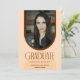 Anúncio de formatura de arquitetura moderna e convite para casa aberta no verso. Se desejado, o verso do cartão pode ter texto adicionado para mais informações sobre educação ou festa de casa aberta