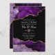 O convite para casamento de pedra agata e ouro roxo e falso com sotaques de preto personalizáveis para o seu evento específico.
