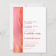 Este belo convite de casamento semiformal moderno com um pouco de diversão e entusiasmo neste espetacular espectro de cores do vermelho indiano, viva magenta, melão, ouro e amarelo de Banana Mania. Na frente está um trabalho de arte de tinta embebido em álcool, que faz fronteira com o texto do convite, com uma banda de contraste de amarelo pastel. Este rosa moderno é do espectro da viva magenta cor de 2023. Esta bela trabalho de arte foi criada pela artista internacional Pauline Benjes usando tinta alcoólica em ótimas matizes de verão. Para complementar o trabalho de arte único e excitante, a frente tem um layout de texto simples, mas elegante, usando fontes serif e san serif. O código hexadecimal de cor deste rosa é #FE6774 e o amarelo é #f4ebb4. Consulte nossa coleção para obter mais cores desta paleta. Convite para Casamento Amarelo Solarenga Moderno.