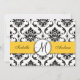 Convites para Casamentos tema damasco Elegantes Preto e Branco com cor de sotaque amarela, que você pode personalizar no formato paisagem em uma placa plana de convite de 5 x 7 polegadas. Um belo fundo cor damasco é acentuado com um embelezamento circular e monograma no topo de uma linha amarela contendo os nomes noiva e noiva. Os efeitos do Photoshop com sombras dão a esta placa uma aparência em camadas 3D impressa diretamente na sua escolha de papel. Convite Design por Elke Clarke ©2010, 2012. Gráficos licenciados. Uma maneira elegante de definir o tema do seu casamento, enviando esses convites de casamento luxuosos. Personalize com seus detalhes de casamento e informações pessoais para seu casamento perfeito.