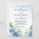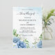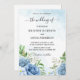 Este elegante convite de casamento azul-claro floral vai ter certeza de que irá abençoar seus convidados! Com um delicado padrão de flores azuis-claras, este cartão é perfeito para o seu dia especial. As cores neutras e o design clássico corresponderão a qualquer tema, enquanto o estoque de cartão de qualidade garante que seus convites tenham uma impressão duradoura. Com uma variedade de cores e tamanhos de envelope a escolher, você poderá criar um convite exclusivo e bonito que certamente agradará aos seus convidados.