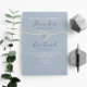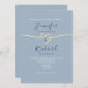 Elegante, mínimo, moderno marinho de roteiro de caligrafia e convite de casamento azul empoeirado com adorável corda de ouro falsa.