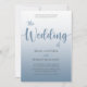 Este é um convite de casamento moderno e elegante do 'casamento de' caligrafia em letras azuis empoeiradas em um fundo poeirento de gradiente azul. Fácil personalizar o texto para criar algo realmente exclusivo.