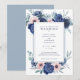 Um elegante, rosa floral azul de marinho aquoso e design de folhagem, Convite para Casamento com uma cor azul empoeirada na parte de trás do cartão. Esta placa de classe e na moda está pronta para você personalizar com fontes de sua escolha ou sair conforme mostrado aqui e adicionar seus detalhes para seu dia especial.