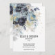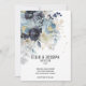 Um moderno e elegante buquê floral roxo, empoeirado, azul-d-água, com sua sombra suavemente derramada no convite e espumantes salpicos e elementos de ouro, com seus primeiros nomes em uma fonte moderna com uma data numérica de casamento por baixo e uma pequena fonte para os detalhes. Este luxo, roxo e poeirento convite azul é adequado para qualquer ocasião.