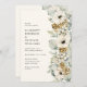 Este elegante convite para casamentos no inverno de vassoura apresenta lindas folhas e bagas azuis poeirentas pintadas à mão, flores de anêmona creme, verde-salva e pinecones em um marfim | fundo creme. Encontre itens correspondentes na Coleção de Casamentos Florais Blue Dusty de inverno.