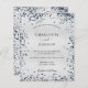 Um convite de casamento moderno, elegante e minimalista. Fundo metálico de aspecto fino prateado decorado com confete azul marinho. Personalize e adicione seus nomes e detalhes do casamento. Letras pretas coloridas.