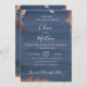 Lava-água moderna em azul-marinho temperado com sotaque metálico falso de folha de cobre, convite para casamento. Personalizar texto, estilo de fonte, cor e tamanho.