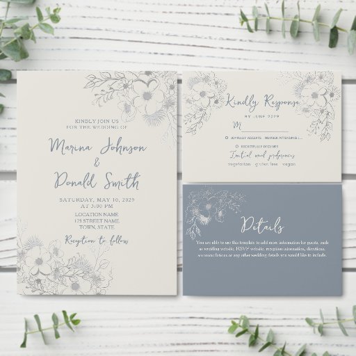Vintage Floral Dusty Blue Wedding Invitation SuiteCriado por Yana Bor