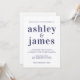 O convite para casamento simples e chic apresenta na moda marinho azul, tipografia elegante e moderna em fundo branco. Basta adicionar os detalhes do seu casamento. Desenvolvido exclusivamente para você pelo Happy Dolphin Studio. Se precisar de ajuda ou produtos correspondentes, entre em contato conosco em happydolphinstudio@outlook.com. Estamos felizes em ajudá-lo a fazer seu casamento o dia mais bonito!