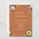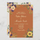 Convite para casamento elegante, moderno, boho, flores silvestres terracotta com flores de aquarela, girassóis e verde.