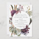 Nosso convite para o casamento Butterum & Plum rodeia seus detalhes do dia do casamento com florais quentes e ricos em roxo violeta, bege e castanho. Uma escolha elegante, mas orgânica, para casamentos de inverno e outono, com elementos botânicos intricadamente pintados.