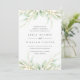 O convite de casamento botânico de cor d'água elegante enquadra seus detalhes de casamento com uma borda de folhagem pastel de cor d'água em verdes pálidos e legal. Personalize com as informações da sua cerimônia em caracteres de cinza.