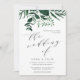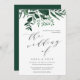 Nosso convite de casamento do Wild Azure mostra os detalhes do dia do seu casamento em ricos de fora do preto, derramados por um spray de folhagem de cor d'água pintada em tons de vinho de verde florestal. Uma escolha moderna, porém orgânica, com sotaques de caligrafia para elegantes casamentos de inverno ou primavera.