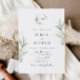 Boho Sage Greenery Botânico Oliva Elegante Convite Minimalista De Casamento. O estilo boêmico arranjou convite botânico com elegante e simples botânicos verdes para salto em cores d'água impressas à mão. A cor verde de fundo sage é linda para casamentos de boho e casamentos verdes. Convites editáveis para primavera, verão, outono (outono) e casamentos no inverno.