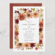 Ponha o tom para o seu casamento outono rústico com este elegante convite de burgundy e terracotta com flores de laranja quente. Perfeito para casamentos de outono com estilo aconchegante ou refinado. Navegue na coleção de cheios para obter placas RSVP, sinais e muito mais.