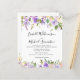 Design floral russo apresenta lindas rosas roxas e brancas cremosas. A design de aquarela também inclui uma variedade de verde, folhas, galhos e vinhas para lhe dar uma vibração moderna e arejada. Este item faz parte da Coleção de Casamentos Botânicos Florais Roxos Rústicos.