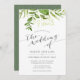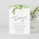 Nosso convite para casamento Wild Meadow mostra os detalhes do dia do casamento na cinza, tocado por um spray de verde de cor d'água pintado em tons exuberantes de verde primavera, azeitona e samambaia. Uma escolha moderna, porém orgânica, com sotaques de caligrafia, para casamentos de primavera ou verão com folhagem verde fresca, folhas e caules em Greenery, cor do ano de 2017.