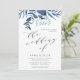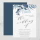 Nosso convite de casamento do Wild Azure mostra os detalhes do dia do seu casamento em ricos de fora do preto, tostados por um spray de folhagem de cor d'água pintada em tons gelados de azul. Uma escolha moderna, porém orgânica, com sotaques de caligrafia para casamentos no inverno elegantes.