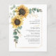 Crie um cartão de convite para o casamento do Sunflower Budget, moderno, com este modelo bonitinho com um belo buquê floral rústico, estrutura de efeito de ouro geométrico, com uma tipografia simples moderna. DICA: Cartões de suíte de casamento iguais, como RSVP, programas de casamento, banners, tapeçarias, etiquetas de presentes, placas e outras pegadas de casamento e guloseimas estão disponíveis na coleção abaixo com esta design.