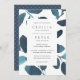 Os convites de casamento botânico a cores aquáticas elegantes apresentam seus detalhes de casamento em caracteres clássicos, emoldurados por folhas de cor d'água em tons de ultramarino e de lacre escuro.