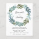Este é um belo design de aquarela elegante. Apresenta elementos florais de aquarela em formato circular. As cores incluem verde-sábio, azul empoeirado sobre fundo branco. Todo texto está em cinzas escuras e muito fácil de personalizar com seus próprios detalhes.