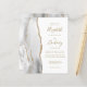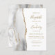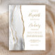 A borda esquerda deste elegante convite de casamento moderno apresenta uma cinza e uma aquarela branca, aparada com falsa brilho dourado. O texto personalizável combina manuscrito, copperplate e fontes itálicas em cinzas de carvão em um fundo branco. O verso apresenta uma cinza correspondente, design de agate branco e ouro.