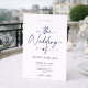 Este refinado convite de casamento branco apresenta um elegante design de roteiro em uma sofisticada fonte azul. O nítido fundo branco cria uma aparência limpa e eterno, perfeita para um casamento romântico e na moda. Personalize-o com seus detalhes para um toque perfeitamente personalizado. Ideal para temas de casamento formais, clássicos e contemporâneos.