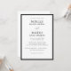 Este é um clássico convite de casamento preto e branco. O design simplista, mas elegante, vai adicionar um toque de estilo a qualquer ocasião. Personalize a cor da borda para se adequar ao seu estilo pessoal. Personalize-o com uma fotografia de noivado atrás, ou deixe a simplicidade clássica comunicar a beleza da sua história de amor.