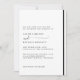 Convidado de casamento branco e preto elegante. Fonte clássica em um fundo branco. A parte de trás apresenta as iniciais da noiva e do noivo com um gráfico decorativo. O texto, a fonte, as cores e o plano de fundo são alteráveis e removíveis.