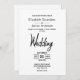 Um branco moderno minimalista com convite de casamento de texto negro.