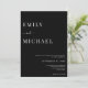 Convite de casamento para Casamento Negro e Branco minimalista. Personalize todo texto e cores neste convite elegante para casamento.